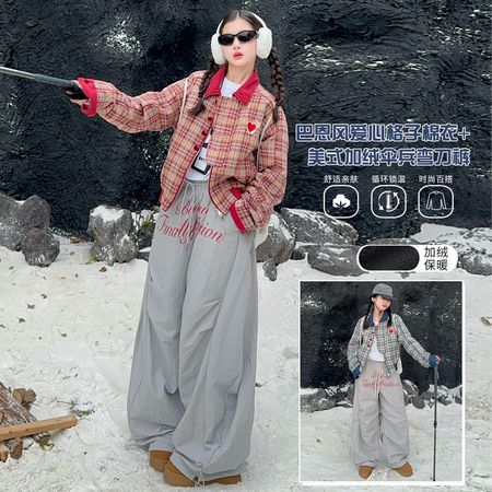 1*0下载视频“Mk-W19巴恩风爱心格子棉衣加绒弯刀裤”