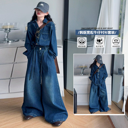 1*4下载视频“Mk-TZ106韩版宽松牛仔衬衫套装”