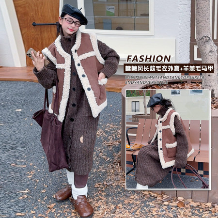1*7收藏“Mk-TZ130咖色毛衣外套皮毛一体马甲”