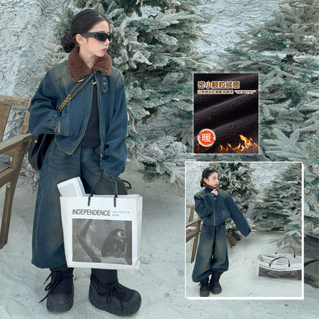 1*2收藏“Mk-TZ135牛仔毛毛外套加绒姐弟裤”